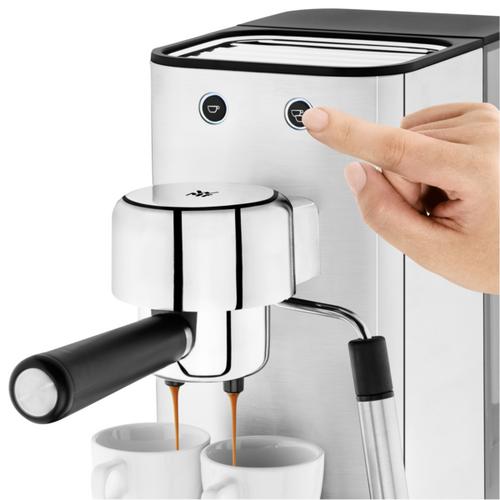 Tutte le bevande che vuoi con un tocco di stile. La macchina per caffè espresso Lumero di WMF consente di vivere in casa l’esperienza gustativa di un bar, con il sistema di riscaldamento Thermoblock che garantisce un delizioso espresso alla temperatura perfetta in un minuto. Espresso, cappuccino, latte macchiato, americano e molte altre preparazioni sempre a portata di mano, con un elegante rivestimento in acciaio inossidabile Cromargan® 18/10 che offre prestazioni durature. La potenza di 1400W e la pressione della pompa di 15bar garantiscono aromi e sapori esplosivi in una tazza o due tazzine, alla sola pressione di un pulsante. Il beccuccio integrato per la schiuma di latte completa l’offerta, per preparare facilmente bevande di qualità degne di un bar. Tutte queste funzionalità con lo stile sorprendente di una raffinata finitura cromata opaca, per un espresso impeccabile ed un design elegante.